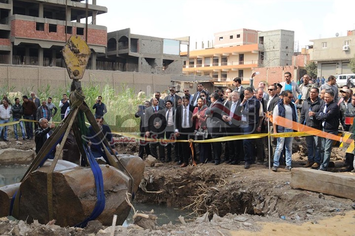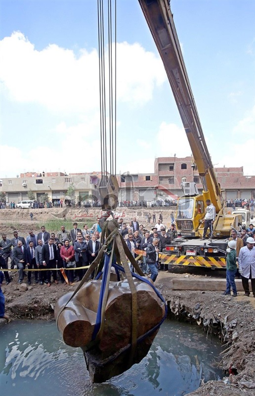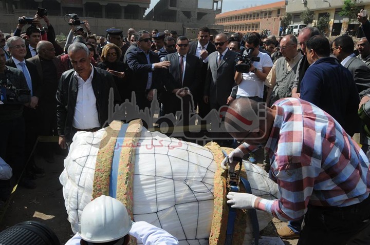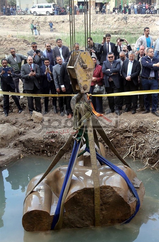 بالصور.. انتشال تمثال رمسيس الثانى بالمطرية