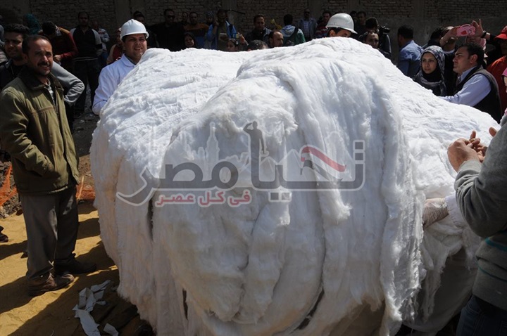 و أوضح د. عفيفي أنه تم تدعيم الجزء المقرر إنتشاله والذي يتكون من جسم التمثال المكتشف، بالحبال المبطنة و التي تستخدم خصيصا للآثار الثقيلة كما تم قياس وزنه التقديري و أبعاده.
