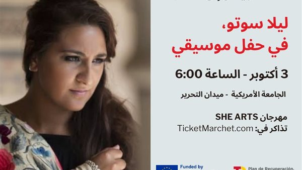 في إطار فعاليات اليوم الثاني من مهرجان SHE ARTS، يُقام الحفل الموسيقي للفنانة الإسبانية ليلا سوتو يوم 3 أكتوبر في تمام الساعة السادسة مساءً، وذلك في الحديقة الرئيسية بمركز الجامعة الأمريكية بالقاهرة – حرم التحرير. يأتي الحفل بالتعاون والتنسيق مع معهد ثربانتس بالقاهرة، ضمن برنامج المهرجان الذي يُعقد سنويًا ويحتفي بالإبداع الفني النسائي من مختلف أنحاء العالم.