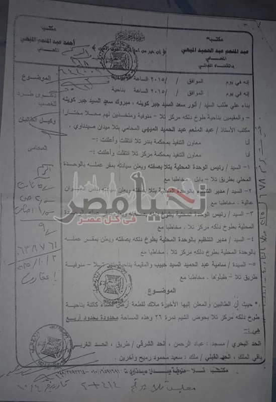 حيث ان المهندس الصاوي الدغيدي، مدير التخطيط العمراني بمجلس مدينة تلا هو الذي حرر الترخيص المخالف للمذكور تامر السيد عبد الحميد كوينة مجاملة لرئيس مكتب التنظيم بطوخ دلكة في حين ان كان الامر بالمخالفة لكل من ذكر بالشكوة يؤدي إلى اهدار المال العام. واستباحة الاراضي الزراعية لكل من تسول، له نفسة وتحويلها إلى تجارة بالمخالفة لقرار محافظ المنوفية الموجة برقم " 2 " بتاريخ 7- 4 - 2015 إلى المهندس مدير الادارة الهندسية الواردة للوحدة المحلية لمدينة ومركز تلا لشئون ادارية وارده" 698" بتاريخ 9 - 4 - 2015 الادارة الهندسية برقم 214 بتاريخ 16 - 4 - 2015 وايضا مخالف للقانون رقم "119" لسنة 2008 في حين الجمعية الزراعية بزرقان لم تتخذ اي اجراء قانوني اتجاة هذه المخالفه.