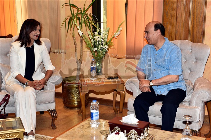 بالصور.. مميش يستقبل الدكتورة نبيلة مكرم وزيرة الهجرة وأعضاء النادي الثقافي المصري الأمريكي